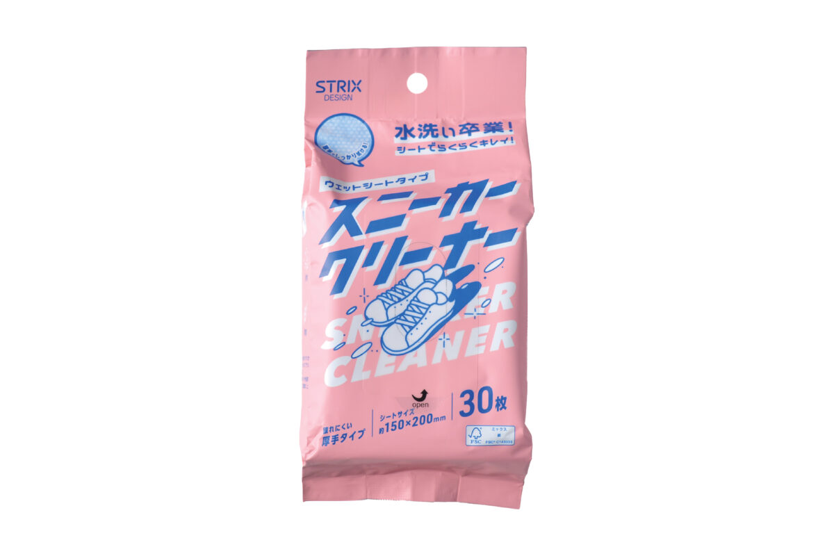 水不要で汚れを落とすシートタイプのスニーカークリーナーです。茶葉とココナッツオイル配合で消臭・ツヤ出しもでき、環境に優しいFSC®認証素材を使用しています。