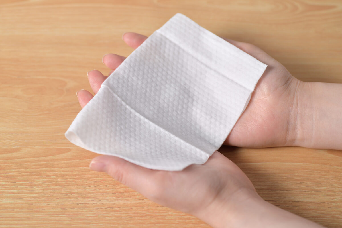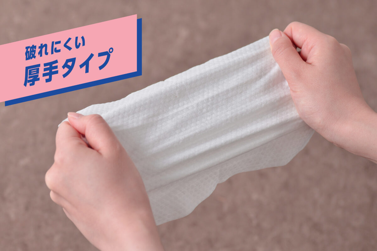 破れにくい厚手のエンボスシートなので、泥汚れやソールの擦れ跡も、力を入れてゴシゴシしっかりと拭き取ることができます。